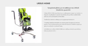 Το καροτσάκι βόλτας URSUS έχει σχεδιαστεί για την καθημερινή αποκατάσταση παιδιών με κινητικές αναπηρίες. Ο σκελετός και το κάθισμα είναι κατασκευασμένα από αλουμίνιο υψηλής αντοχής και πολλά σημεία του είναι καλυμμένα με μαλακά μαξιλάρια. Είναι εξοπλισμένο με αποσπώμενη & αντιστρέψιμη μονάδα καθίσματος ClickClack ©, το οποίο σημαίνει ότι μπορείτε εύκολα να προσθαφαιρείτε και να αλλάζετε την φορά που κοιτάει το κάθισμα.