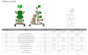 | C1 | Ρύθμιση ύψους στηρίγματος θώρακα | [cm] | 46 – 75 | 50 – 75 | 50 – 97 | 65 – 97 |