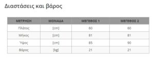 | G | Πλάτος στηρίγματος γονάτων | [cm] | 14 – 23 | 14 – 23 | 14 – 23 | 14 – 23 |