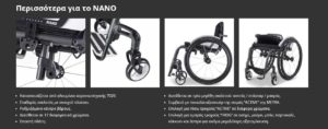 Το NANO είναι ένα αμαξίδιο σταθερού σκελετού με ανοιχτό πλαίσιο. Είναι κομψό, αθλητικό και συμπαγές. Σχεδιάστηκε μέχρι την τελευταία λεπτομέρεια για μοναδικά χαρακτηριστικά οδήγησης και άνεση.