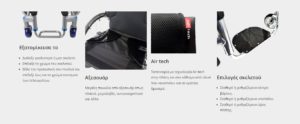 • Πτυσσόμενο σύστημα Q-lock για την πλάτη και το εμπρός μέρος του σκελετού.