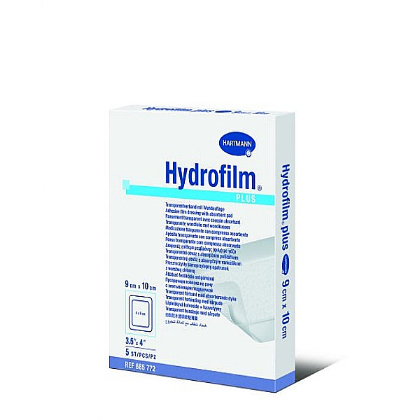 Αυτοκόλλητα διαφανή επιθέματα τραυμάτων με απορροφητική στρώση που έρχεται σε επαφή με το τραύμα χωρίς να προσφύεται σε αυτό. Το αδιάβροχο επίθεμα Hydrofilm Plus χάρη στη διαφανή, λεπτή μεμβράνη του και τον απορροφητικό του πυρήνα στερεώνεται με ασφάλεια, ενώ είναι ιδιαίτερα φιλικό προς το δέρμα. Με ημιδιαπερατή μεμβράνη πολυουρεθάνης αδιαπέραστη από τα μικρόβια και το νερό. Η διαφάνεια επιτρέπει την παρακολούθηση της περιοχής γύρω από το τραύμα καθώς και της ποσότητας του απορροφώμενου εξιδρώματος. Με υποαλλεργικό συγκολλητικό υλικό, αφαιρούνται χωρίς ερεθισμούς.