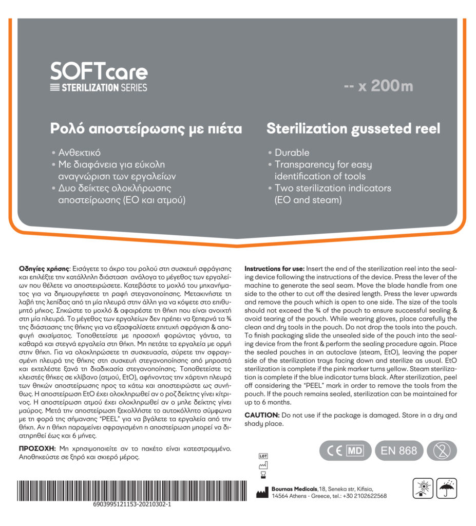 Ρολό αποστείρωσης με πιέτα αριστερά και δεξιά στις πλευρές του, κατάλληλο για κλίβανο.