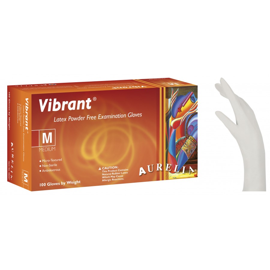 Εξεταστικά γάντια Aurelia Vibrant micro-textured, μίας χρήσης, χωρίς πούδρα, κατασκευασμένα από 100% φυσικό λάστιχο, αμφιδέξια, σε κρεμώδες λευκό χρώμα, μη αποστειρωμένα.