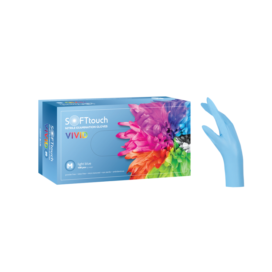 Εξεταστικά γάντια Soft Care Vivid Γάντια Νιτριλίου χωρίς πούδρα, κατασκευασμένα από 100% νιτρίλιο (χωρίς latex). Κατάλληλα για άτομα με αλλεργία στο λάτεξ (latex free)