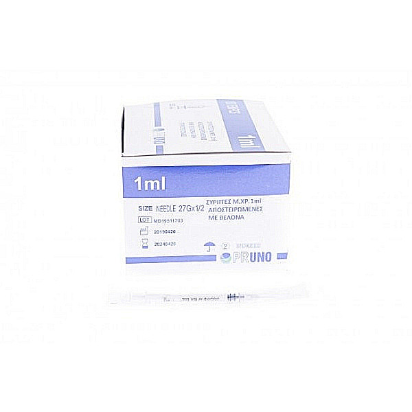 Σύριγγα ινσουλίνης 1ml 27G 1 1/2 Με Βελόνα Pruno