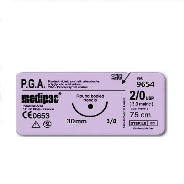 Συνθετικό απορροφούμενο χειρουργικό ράμμα πολυγλυκολικού οξέος PGA 2.0 μήκους 75mm.