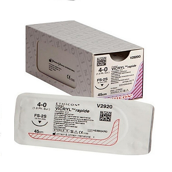• Πλεκτό ράμμα Vicryl 4.0 κορυφαίας ποιότητας για εύκολο χειρισμό και ασφαλές δέσιμο κόμπου.