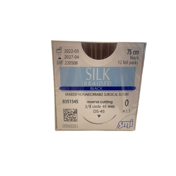 Tο υλικό ραφής Silk Braided Black από την SMI είναι κατασκευασμένο από το φυσικό πρωτεϊνικό νήμα του μεταξοσκώληκα. Το πλεγμένο πολυνήμα είναι επικαλυμμένο και δεν απορροφάται . Ως αποτέλεσμα, προσφέρει μεγάλη διάρκεια ζωής στους ιστούς αρκετών μηνών . Το υλικό του ράμματος έχει εξαιρετικές ιδιότητες χειρισμού. Το νήμα είναι εύκαμπτο, ιδιαίτερα ανθεκτικό στο σκίσιμο και διαθέτει ισχυρή ασφάλεια κόμπων . Ο έτοιμος προς χρήση συνδυασμός βελόνας-κλωστής διατίθεται σε διάφορες αντοχές βελόνας και κλωστής.