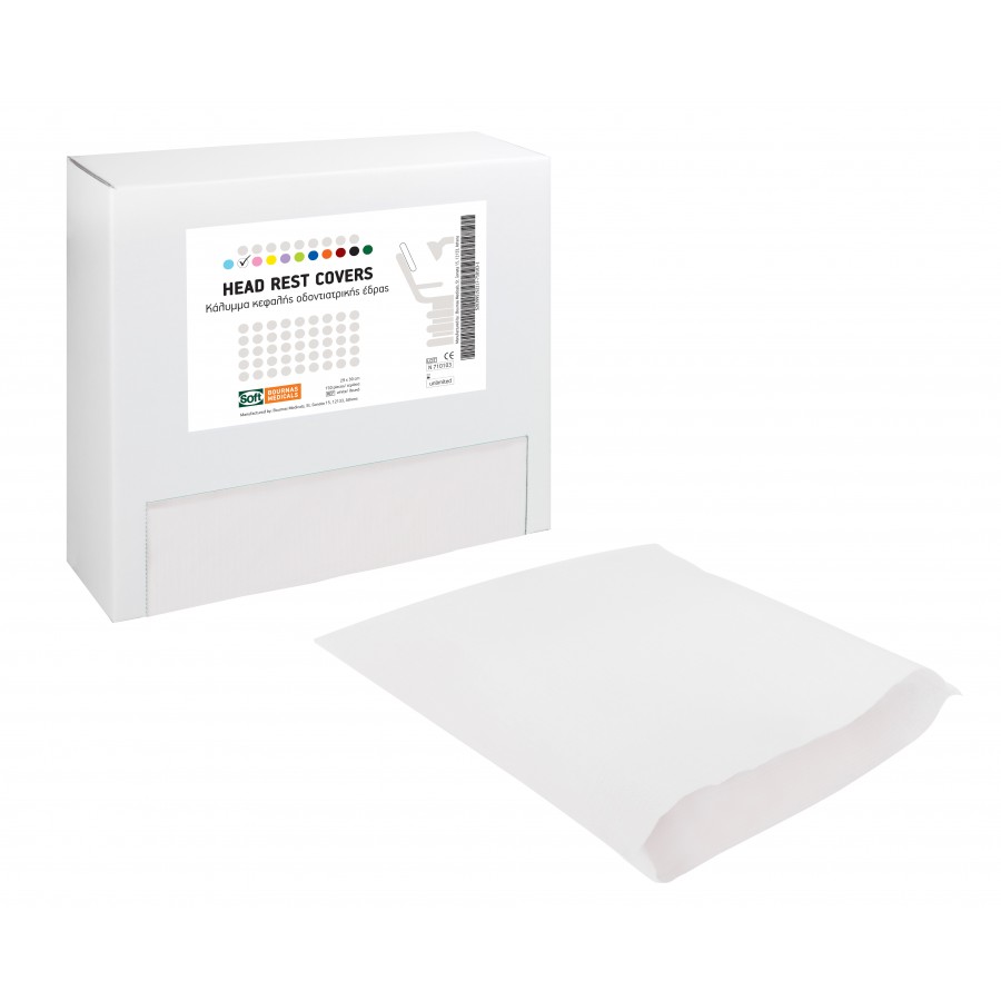 Κάλυμμα κεφαλής οδοντιατρικής έδρας 1ply χαρτί + 1ply πλαστικό.