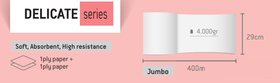 DELICATE -Χειροπετσέτα επαγγελματική ρολό 2ply 4000gr Jumbo – 29cm