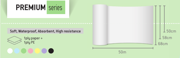 Εξεταστικό Πλαστικοποιημένο ρολό με κόλλα, 100% καθαρός χημικός πολτός, αδιάβροχο, απορροφητικό και με ικανότητα μεγάλης αντοχής, διαθέτει περφορέ κάθε 38cm για εύκολη κοπή.