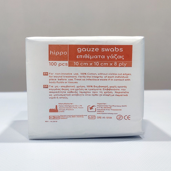 • 100% βαμβακερή, χωρίς ορατές κομμένες άκρες, για χρήση σε τραύματα.