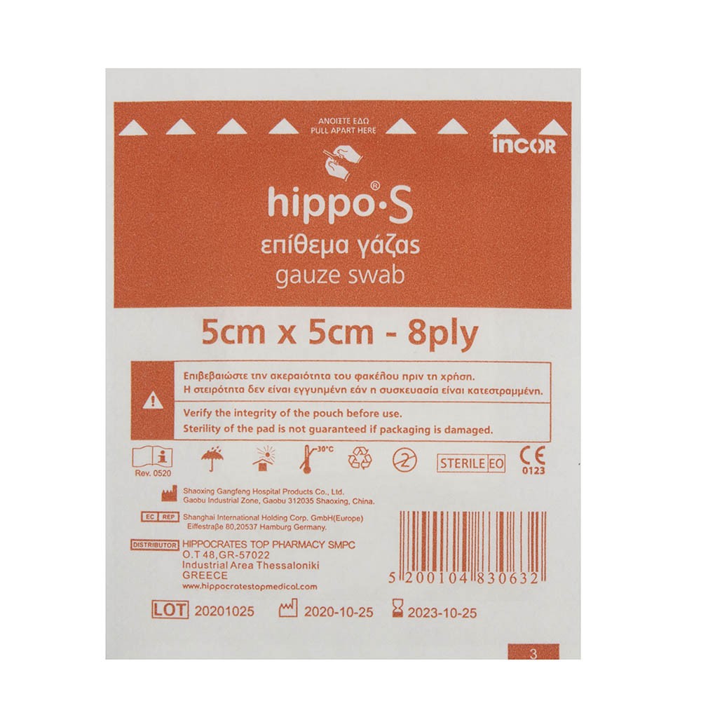 HIPPO-S Γάζες Αποστειρωμένες 17Χ15cm -8ply (5x5cm διπλωμένη) 100 Τεμάχια