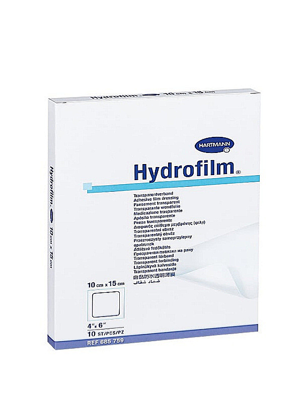 Επίθεμα κολλητικό διαφανές Hydrofilm® της γερμανικής εταιρίας Hartmann. Αυτοκόλλητα, διαφανή, ημιδιαπερατά επιθέματα που είναι αδιάβροχα και αντιβακτηριδιακά. Το Hydrofilm® χρησιμοποιείται ως πρωταρχικός επίδεσμος για την κάλυψη των μετεγχειρητικών και τραυματικών πληγών ή δευτεροβάθμια ως επίδεσμος για λόγους συγκράτησης.