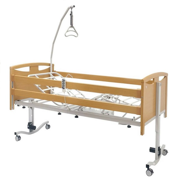 Πολύσπαστη ηλεκτρική κλίνη, με επένδυση ξύλου. Μεταλλικό σομιέ με παράλληλες μπάρες υποδοχής του στρώματος. Η ανάκλιση της πλάτης και η ανύψωση των κάτω άκρων πραγματοποιούνται με ηλεκτρικό χειριστήριο το οποίο κλειδώνει, προς αποφυγή ατυχημάτων.