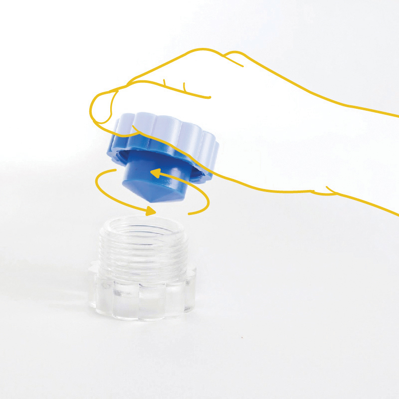 - Ξεβιδώνετε τη βάση, τοποθετείτε το χάπι και περιστρέφετε τον τρίφτη