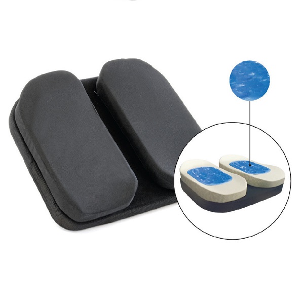 Εργονοµικά σχεδιασµένο µαξιλάρι για τον σωστό επιµερισµό του σωµατικού βάρους. Η βάση είναι από διαµορφωµένο “PU Foam” υλικό, µε αεριζόµενη δικτυωτή επένδυση. Το άνω τµήµα της επένδυσης φέρει “Velcro” για την εφαρµογή δύο ανατοµικών µαξιλαριών, τα οποία ρυθµίζονται σε θέσεις επιλογής. Κατασκευή από “Visco Elastic” υλικό για την υποστήριξη του γλουτού και των µηρών. Αποφορτίζουν την περιοχή του κόκκυγα. Χρώµα: Μαύρο.