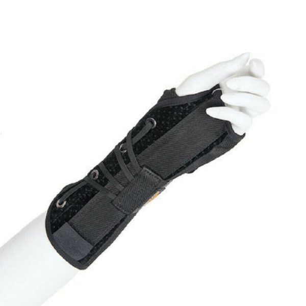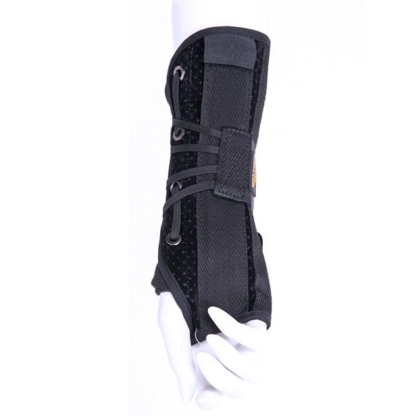 Νάρθηκας καρπού κατασκευασμένος από ελαστικό ύφασμα υψηλής ποιότητας και αντοχής. H πλέξη του υλικού στη ραχιαία επιφάνεια είναι δικτυωτή για να περιορίζεται η θερμότητα. Διαθέτει δύο (2) διαμορφωμένα ελάσματα αλουμινίου (ένα σε κάθε πλευρά) προσφεροντας βέλτιστη σταθεροποίηση της περιοχής του καρπού και περιορισμό της κάμψης. Η εφαρμογή και η ρύθμιση της συμπίεσης γίνεται με δύο αυτοκόλλητες ταινίες velcro.