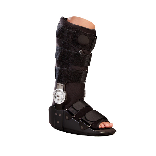Νάρθηκας ποδοκνημικής, τύπου μπότα, κατασκευασμένος από ελαφρύ και άκαμπτο πλαστικό υψηλής ποιότητας και αντοχής. Περιέχει εσωτερική επένδυση από μαλακό ύφασμα και αφρολέξ, προσφέροντας μεγαλύτερη άνεση. Διαθέτει πολυκεντρικό μηχανισμό για τον έλεγχο της κάμψης και της έκτασης της ποδοκνημικής άρθρωσης ανά 7.5o.