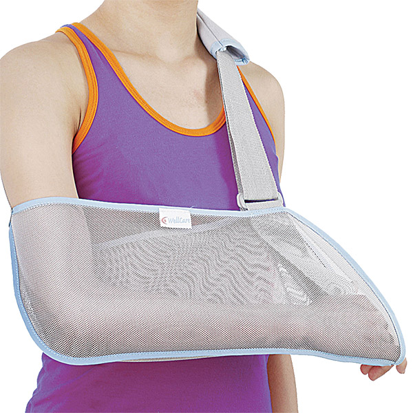 Κατασκευή από δικτυωτό ύφασμα, υποαλλεργικό και αεριζόμενο, υψηλής ποιότητoς. Φέρει ρυθμιζόμενο ιμάντα ανάρτησης. Μαξιλαράκι αποφόρτισης του αυχένος και υποδοχή για τον αντίχειρα.