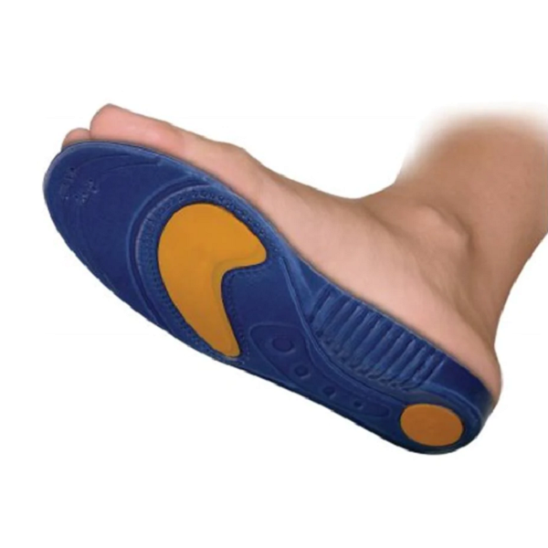 Πέλμα κατασκευασμένo από πολυμερές extra soft gel, υψηλής ποιότητας και αντοχής. Ειδικός σχεδιασμός με μαλακότερο gel πορτοκαλί χρώματος αποκλειστικά για την περιοχή της πτέρνας και του μεταταρσίου. Διαθέτει ενσωματωμένη ελαφριά ανύψωση στην περιοχή της καμάρας, προσφέροντας ισομερή αποφόρτιση των πιέσων.